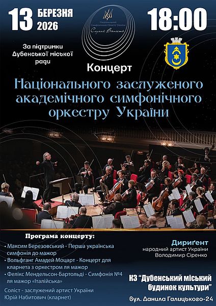 13 березня о 18.00 у КЗ «Дубенський міський будинок культури» виступить з концертом Національний заслужений академічний симфонічний оркестр України.